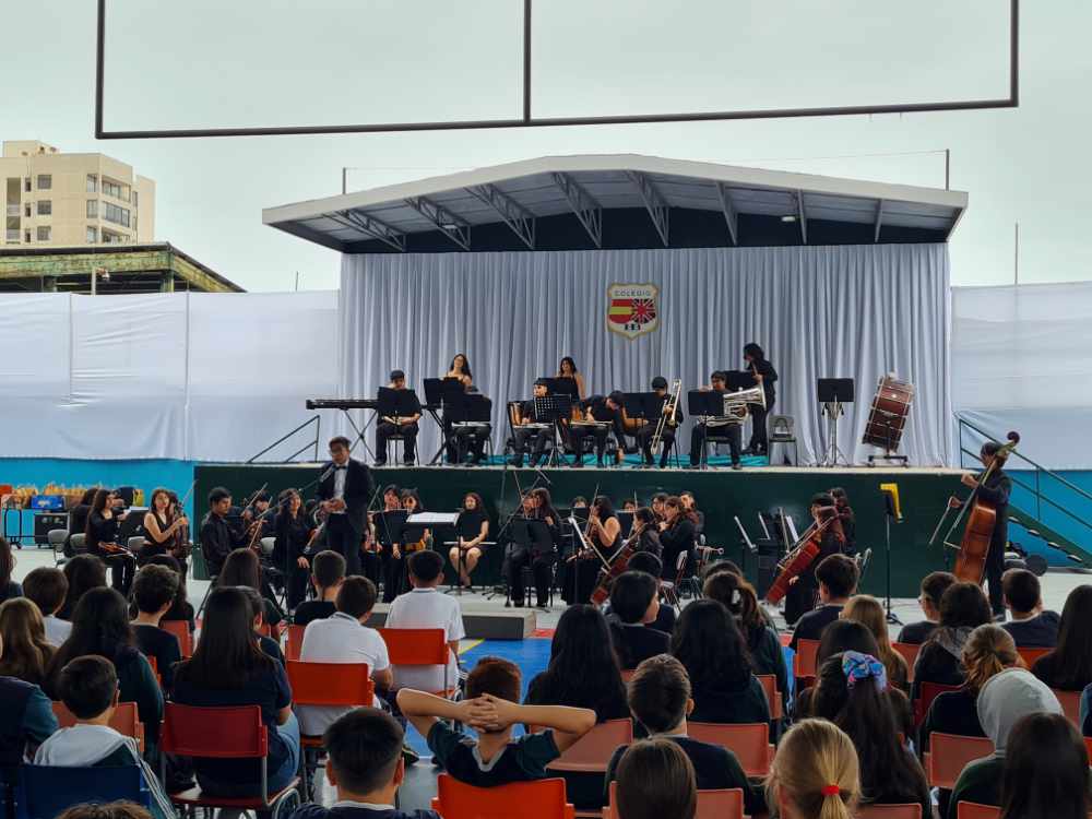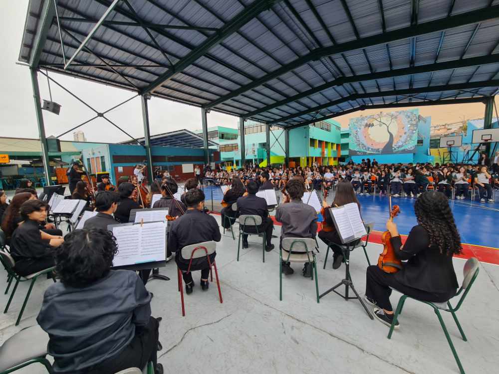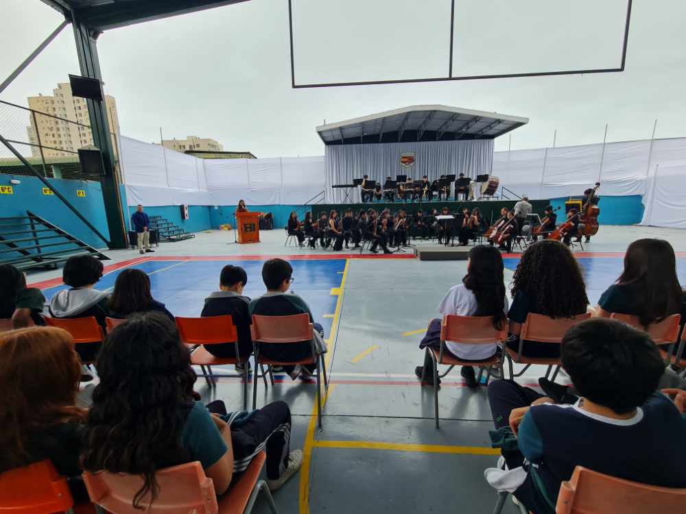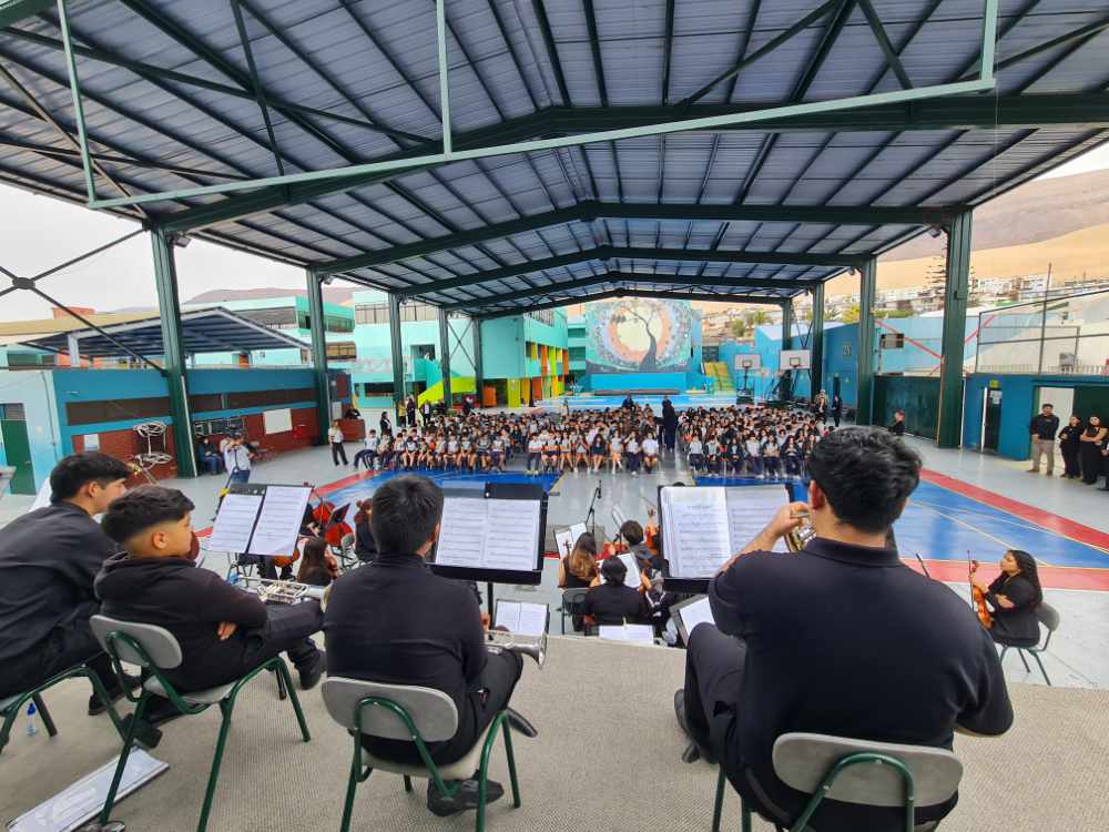 Agradecemos a la FOJI, a la Fundación Collahuasi y, especialmente, a los talentosos músicos de la Orquesta Sinfónica Juvenil Regional de Tarapacá por brindar a nuestros estudiantes una mañana llena de armonía, inspiración y aprendizaje.