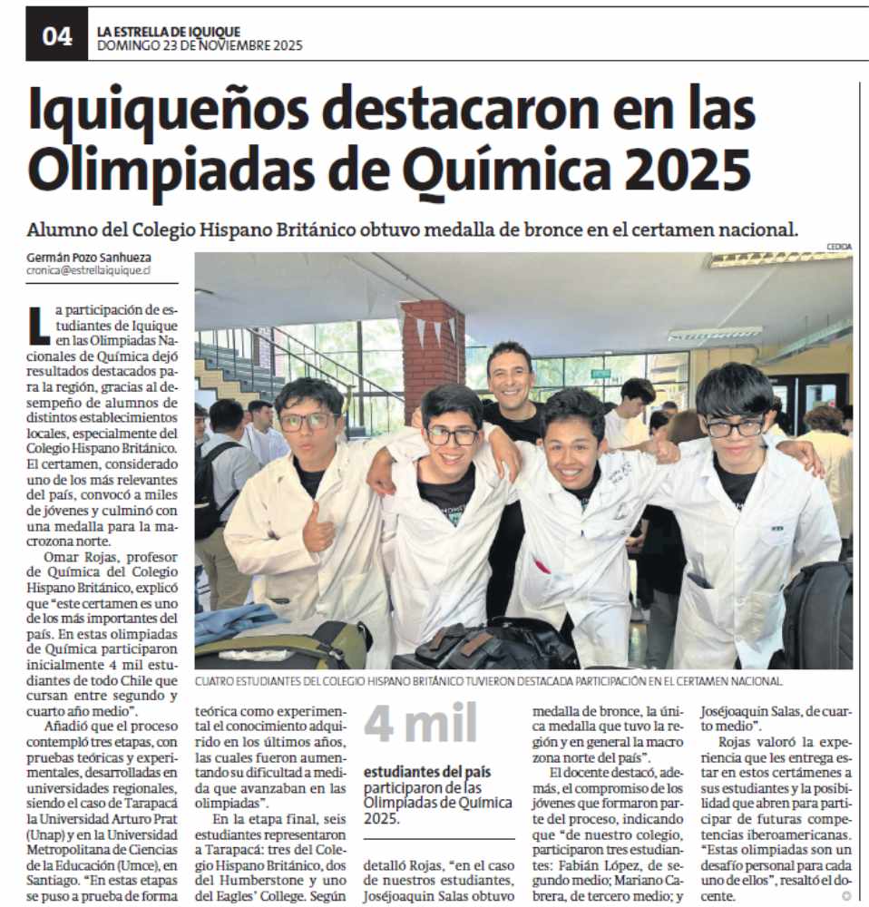 La participación de nuestros jóvenes en esta prestigiosa competencia refleja el compromiso del Colegio Hispano Británico con el desarrollo científico, la excelencia académica y la promoción de experiencias que enriquecen la formación integral de sus estudiantes.