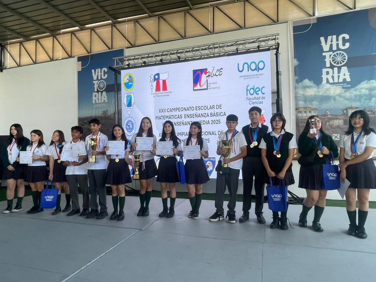 Nuestros estudiantes, desde 7° Básico hasta 4° Medio, demostraron una gran dedicación, razonamiento y pasión. Es importante destacar que, de los 30 estudiantes que participaron activamente durante el año en el proceso CMAT, 26 cumplieron con el requisito mínimo (rendir al menos 3 pruebas individuales) para ser reconocidos en esta ceremonia. A la premiación asistieron 17 de nuestros estudiantes, ya que los alumnos de Tercero Medio se encontraban en una gira de estudios.