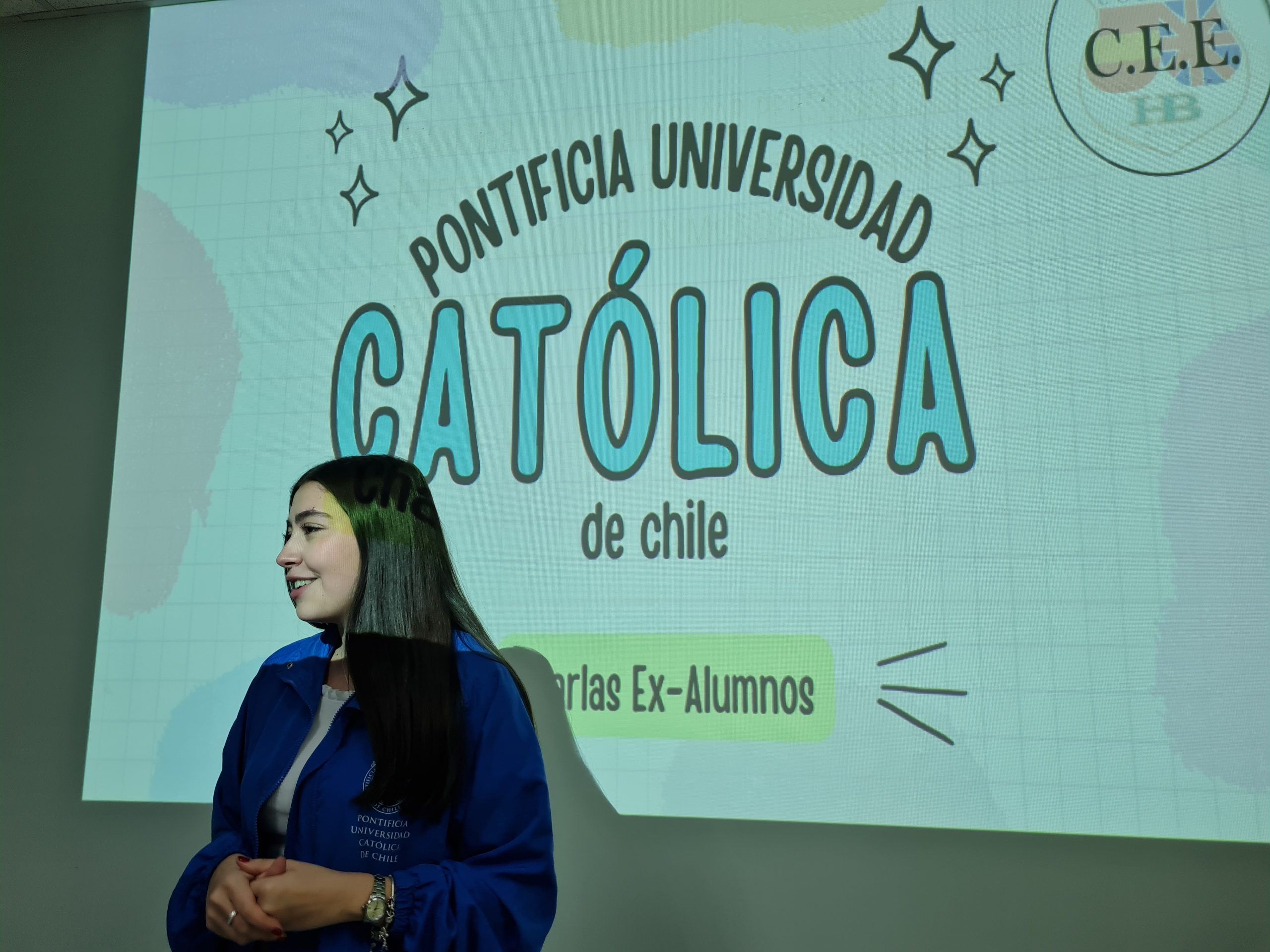 Francisca Palominos y Sebastián Morón, actualmente estudiantes de la Pontificia Universidad Católica, relataron a sus compañeros cómo la preparación recibida en el Colegio Hispano Británico fue fundamental para alcanzar sus metas, destacando: