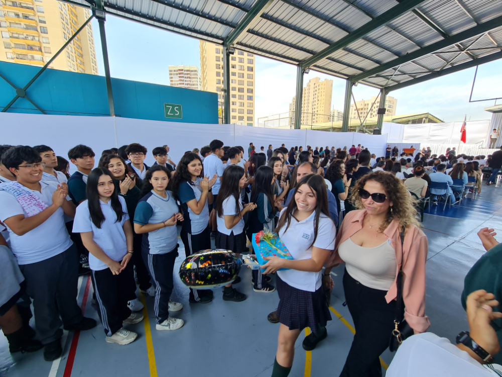 El momento culmine y más simbólico de la ceremonia llegó con la “Última Lista”. Uno a uno, los nombres de los estudiantes de IV Medio resonaron en el patio principal. Con la voz cargada de sentimiento, cada uno respondió con su último “¡Presente!” de su vida escolar. Fue una instancia profundamente emotiva que no dejó a nadie indiferente, donde se pudo ver la emoción reflejada no solo en los estudiantes, sino también en los ojos orgullosos y nostálgicos de sus padres y apoderados, y en el profundo cariño de sus profesores, quienes los han guiado a lo largo de este camino.