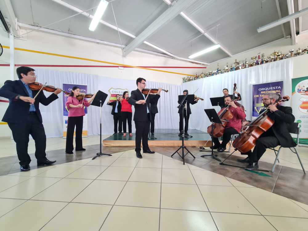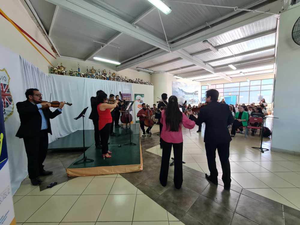 El repertorio incluyó obras de gran valor artístico, entre ellas “Vicuña Roja” de Rodrigo Durán y fragmentos de Las cuatro estaciones de Antonio Vivaldi, generando una experiencia sensorial que conectó a los estudiantes con distintos estilos y épocas musicales.