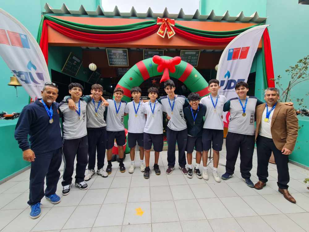 El reconocimiento a estos éxitos llegó en una entrega especial llevada a cabo este jueves 04 de diciembre en nuestro Colegio. Contamos con la distinguida presencia del Gestor Territorial del Instituto Nacional de Deportes, Sr. Maximiliano Aguilera Saunero, quien, junto al Director, Sr. José Téllez Morales, y el Encargado de Deportes, Sr. Fabrizio Castillo Pérez, realizó la entrega oficial de medallas y trofeos a los deportistas.