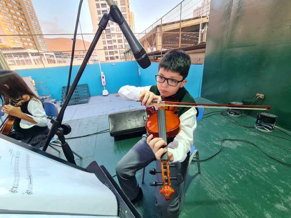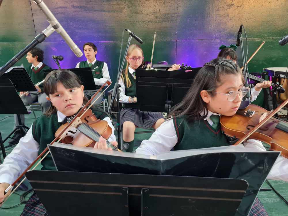 Uno de los momentos de mayor orgullo para nuestra institución fue la presentación de la Orquesta de Cámara del Colegio, cuyos integrantes son estudiantes que forman parte del Taller Extraescolar de Música, dirigido por el profesor Bernardo Ilaja Valdivia. Bajo la batuta del profesor Ilaja, nuestros estudiantes demostraron un talento y una disciplina excepcionales, interpretando piezas con una precisión y sensibilidad que emocionó al público. Su labor al frente de este taller es un pilar fundamental en la formación artística de los niños, niñas y adolescentes que lo conforman.