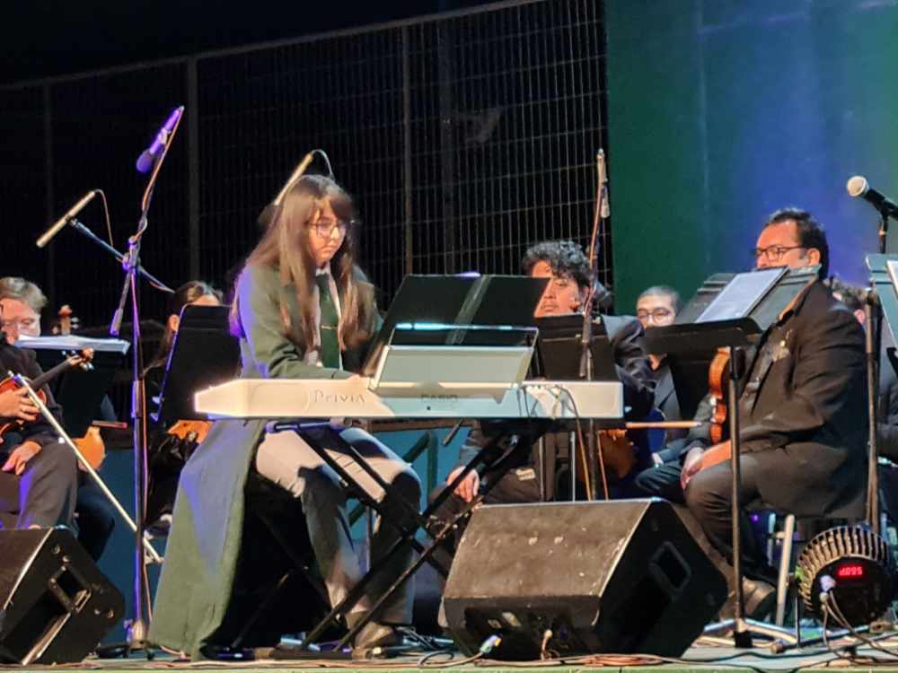 La velada tuvo un momento de especial brillo con la presentación de la estudiante Constanza Cáceres, quien deslumbró al público con un espectacular solo de piano. Su interpretación, llena de madurez y talento, fue recibida con una calurosa ovación.
